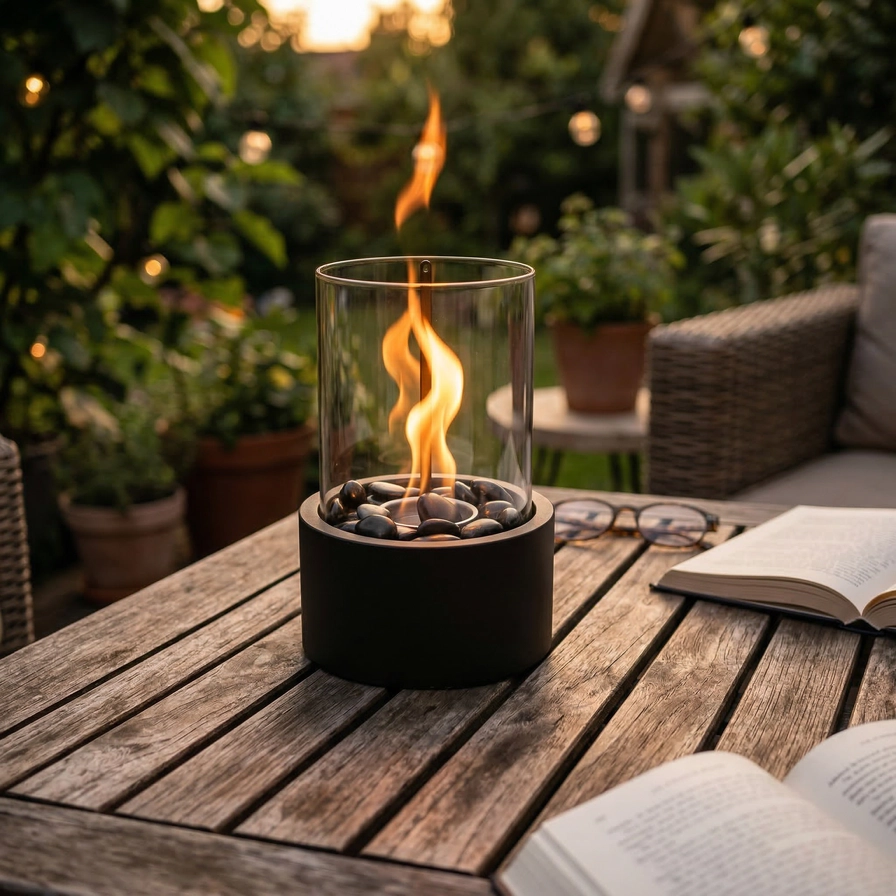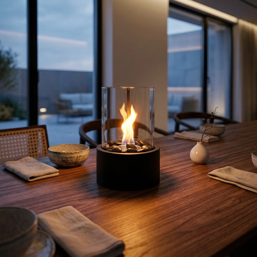🏡 Styling‑Tipp Platziere den Tischbrenner in der Mitte deines Tisches, dimme das Licht und versammle dich mit Freunden oder Familie. Ergänze eine Decke, ein Getränk und genieße die gemütliche Atmosphäre.